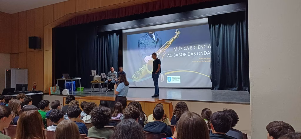 A Semana do Departamento das Ciências teve ainda uma palestra no dia 21 de abril para os alunos do 7º e do 11º anos “Ao sabor das ondas “ onde o Engenheiro Adelino Galvão do IST mostrou a ligação entre a Música e a Física e a Química.