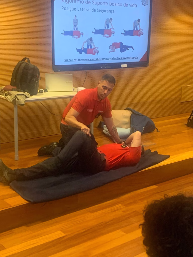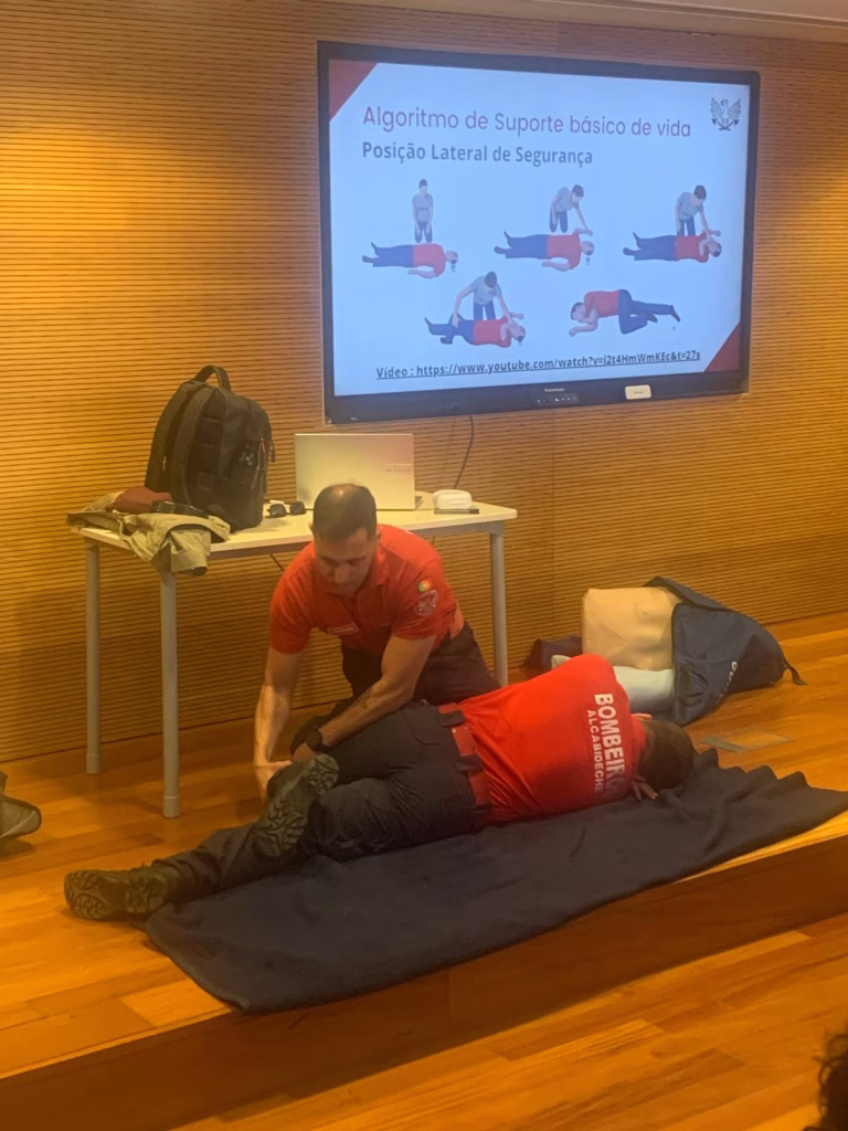 No âmbito da Semana do Departamento das Ciências Físicas e Naturais esta quinta-feira, dia 16, os Bombeiros de Alcabideche vieram à nossa escola dar uma palestra sobre Suporte Básico de Vida. Foi uma atividade muito útil que nos permitiu adquirir mais conhecimentos e competências que nos ajudarão numa possível emergência. Com a atividade, ficámos a saber como fazer suporte básico de vida, desobstrução das vias aéreas, entre outros.